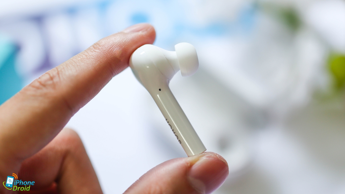 ตัวของหูฟังมาในรูปแบบ In-Ear มีก้านที่ยาวพอสมควร โดยด้านบนจะเป็นยางซิลิโคนที่ถอดออกได้เพื่อเปลี่ยนขนาดตามหูของเราครับ