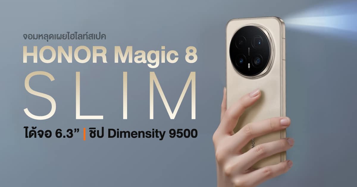 ตามรายงานก่อนหน้านี้ระบุว่า HONOR Magic 8 Slim (หรือ Magic 8 mini) จะมีความบางต่ำกว่า 6 มม. แต่ยังได้แบตเตอรี่มากถึง 5500mAh และมีกล้องหลัก 200MP + กล้อง Periscope 50MP ด้วยนะ