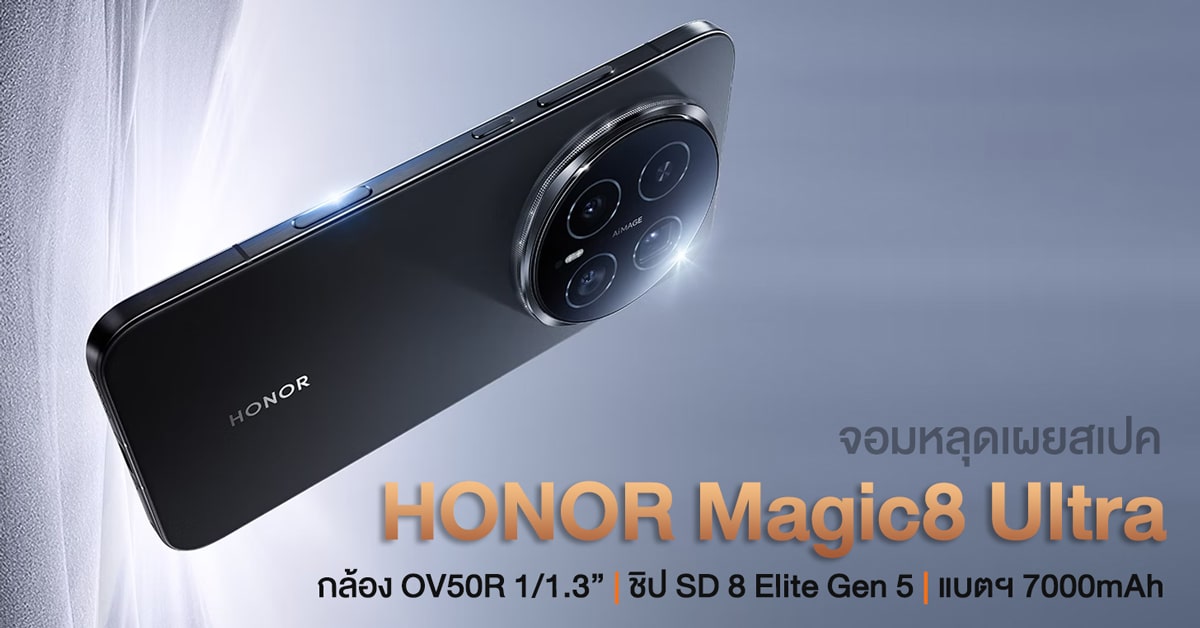 HONOR Magic8 Series เปิดตัวในจีนไปเรียบร้อย มาด้วยกัน 2 รุ่นคือ Magic8 กับ Magic8 Pro แต่เท่านั้นยังไม่พอ เพราะตามรายงานล่าสุดระบุว่าจะมีรุ่น Magic8 Ultra ตามมาอีกรุ่นด้วยครับ และวันนี้ก็มีข้อมูลสเปคหลุดออกมาเรียบร้อย จัดเต็มสมกับรุ่น Ultra เลยล่ะ!
