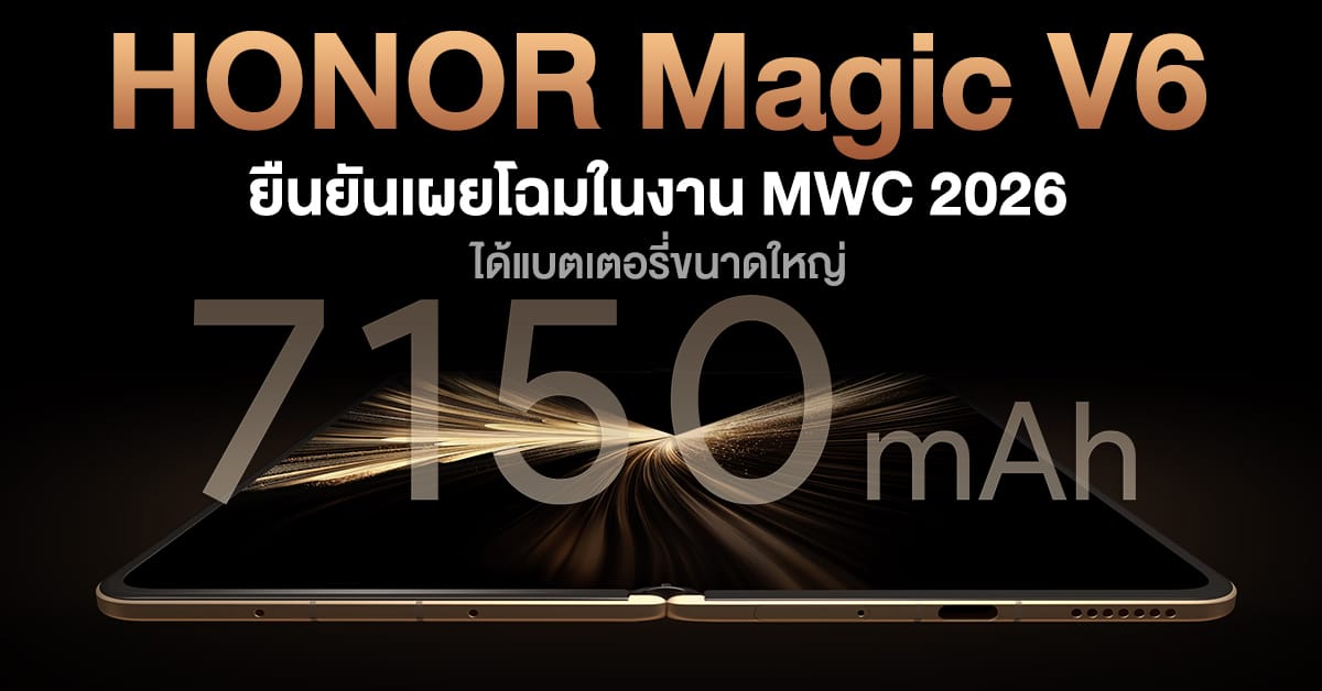 โดย HONOR ยืนยันแล้วว่า HONOR Magic V6 จะมีการเผยโฉมทางการในงาน MWC 2026 ที่จะจัดขึ้นช่วงวันที่ 2 – 5 กุมภาพันธ์นี้เลย เรียกว่ารอบนี้มาเร็ว เราคงได้เห็นอะไรเด็ด ๆ เร็ว ๆ นี้แน่!