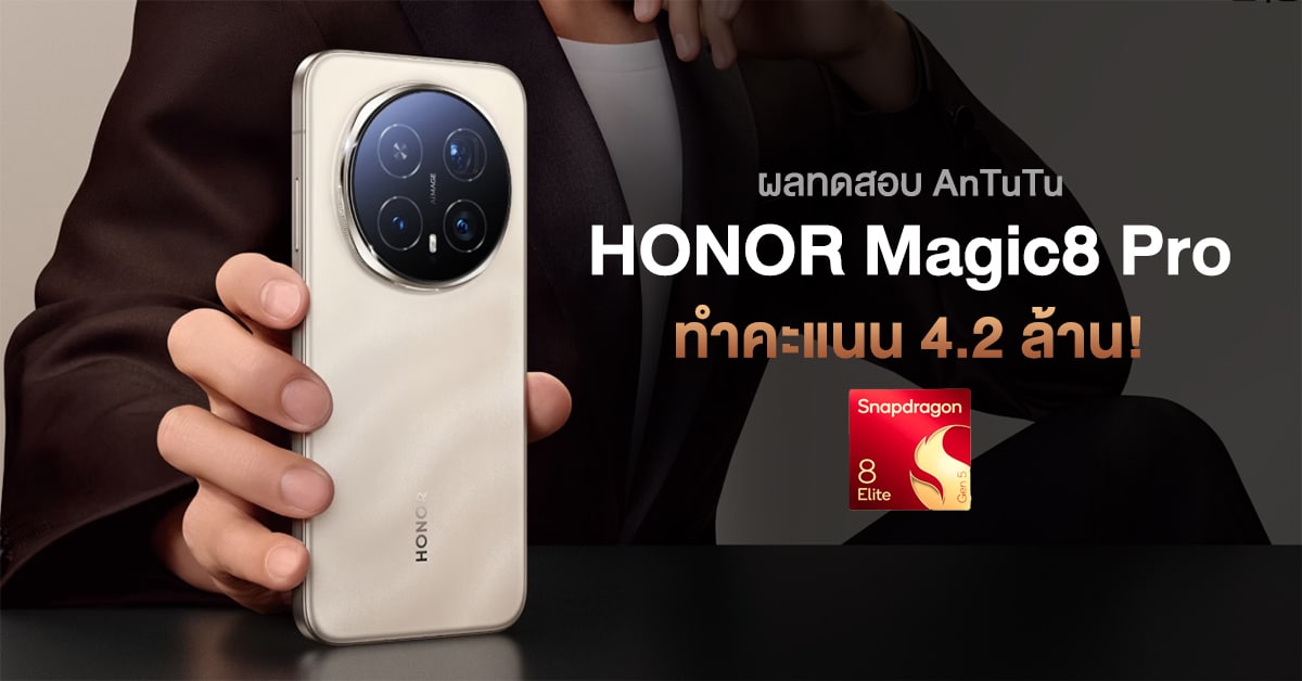 แรงจริงไม่กั๊ก…ผลทดสอบ AnTuTu ของ HONOR Magic8 Pro มาแล้ว ทำคะแนนกว่า 4.2 ล้านแต้ม!