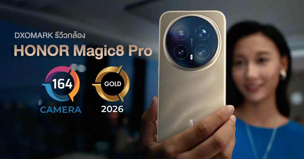 DXOMARK ปล่อยตัวปล่อยใจ HONOR Magic8 Pro ออกมาเรียบร้อยครับ ทำคะแนนดีที่ 164 พร้อมการันตีด้วยตราทอง Gold Label 2026 ด้วยนะ