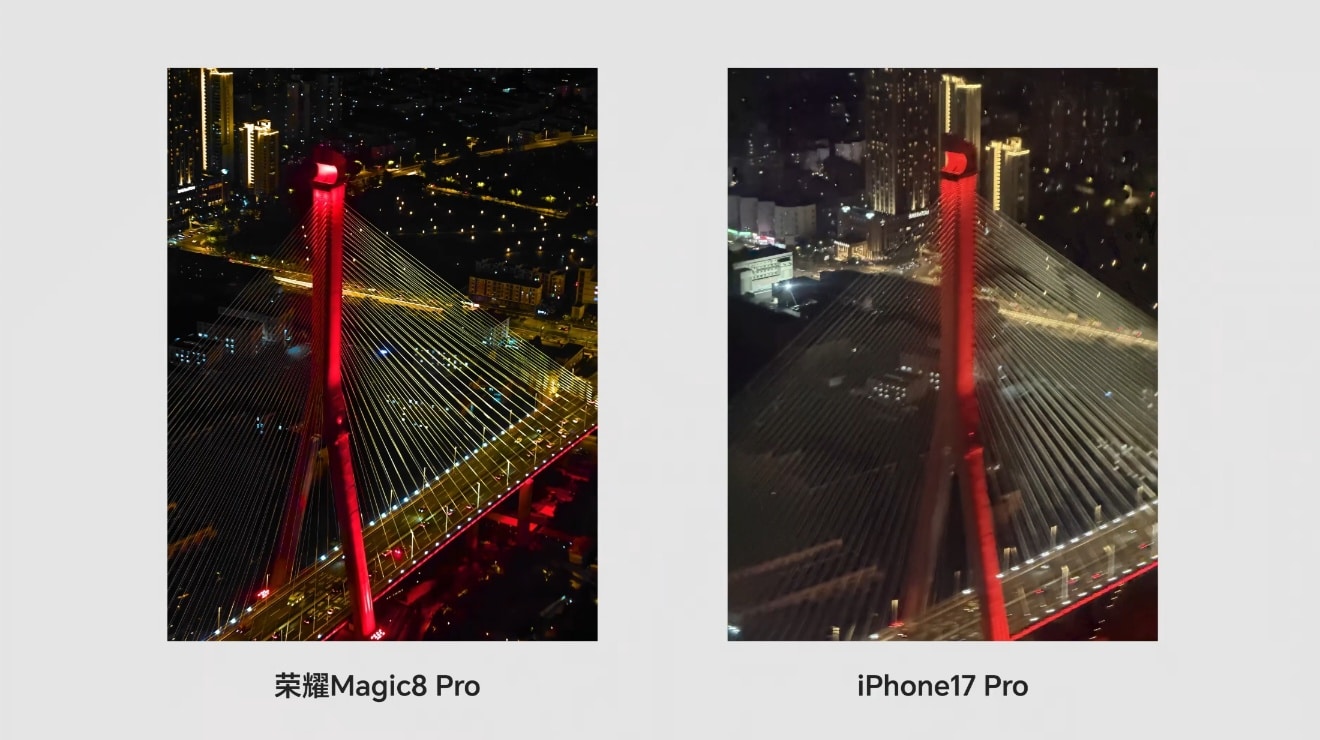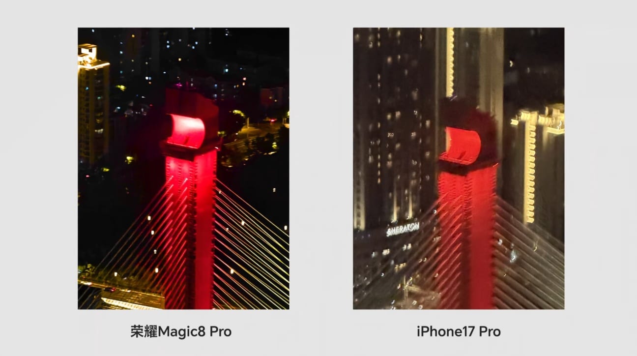 และรอบนี้ HONOR ยังเอามาเทียบกับคู่แข่งอย่าง iPhone 17 Pro ด้วยเลย เราจะได้เห็นประสิทธิภาพกล้องของทั้งคู่ในการซูมแสงน้อยอย่างชัดเจน ตามตัวอย่างด้านล่างนี้เลย