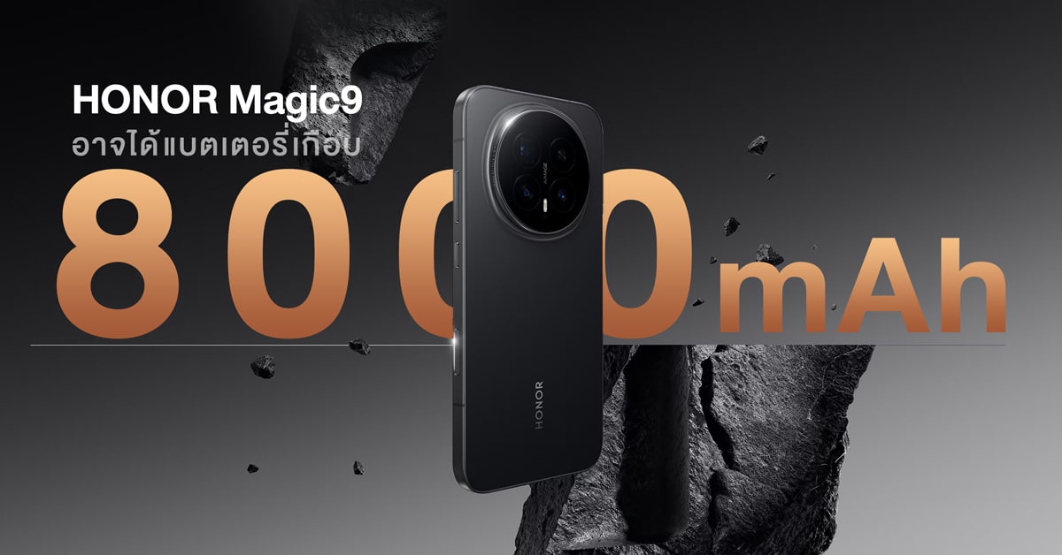 ข่าวลือของ HONOR Magic9 Series เริ่มออกมากันแล้วครับ รอบนี้ลือเรื่องแบตเตอรี่ของ HONOR Magic9 รุ่นเริ่มต้น ว่าจะได้ความจุแบตเตอรี่ที่อัปเกรดขึ้นมาอีก เป็นระดับ 8000mAh เลย!