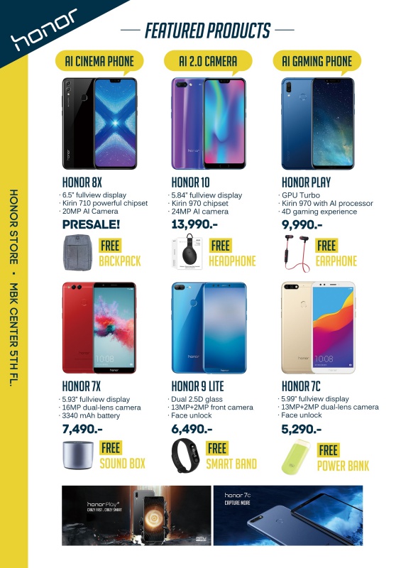 โดยลูกค้าสามารถสั่งจอง HONOR 8X สมาร์ทโฟนรุ่นใหม่ล่าสุดที่กำลังจะเปิดตัวเร็วๆนี้ พร้อมรับชุดของขวัญสุดพิเศษ HONOR 8X สมาร์ทโฟนรุ่นล่าสุดจากตระกูล X-Series ที่มาเทคโนโลยีอันล้ำสมัยผสานเข้ากับฟีเจอร์และสไตล์ที่โด่ดเด่นในราคาย่อมเยา HONOR 8X ถือเป็นสมาร์ทโฟนเพื่อความบันเทิงระดับโรงภาพยนตร์ที่ตอบโจทย์ทุกไลฟ์สไตล์ความสนุกที่คุณต้องการ ซึ่งออเนอร์จะเปิดตัว HONOR 8X อย่างเป็นทางการในประเทศไทยในวันที่ 24 ตุลาคม ลูกค้าสามารถรับชมการถ่ายทอดสดภาพบรรยากาศงานได้ที่