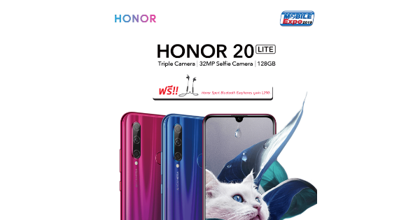 - เมื่อซื้อ HONOR 20 Lite ในราคาเริ่มต้นที่ 7,990 บาท รับฟรีทันที! Honor Sport Bluetooth Earphones มูลค่า 1,290 บาท