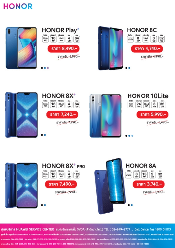 - HONOR 8X Pro ลดสูงสุดในราคาพิเศษเพียง 7,490 บาท จากราคาปกติ 7,990 บาท