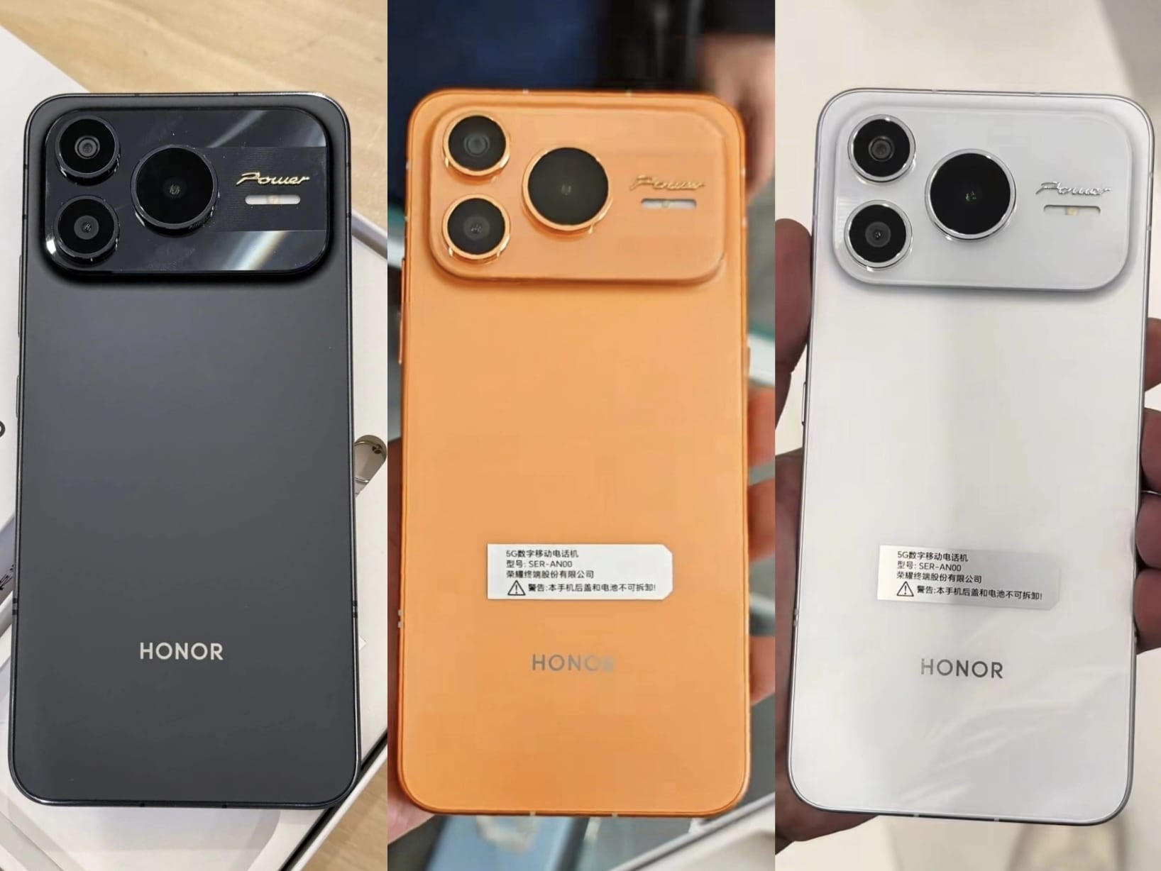 โดย HONOR Power 2 จะมาพร้อมดีไซน์ฐานกล้องขนาดใหญ่ และมีให้เลือก 3 สีได้แก่ ดำ, ส้ม และขาว ซึ่งดีไซน์นี้ก็แอบคุ้นตาอยู่ไม่น้อย ปฏิเสธไม่ได้เลยว่าคล้ายกับ iPhone 17 Pro Max จริง ๆ
