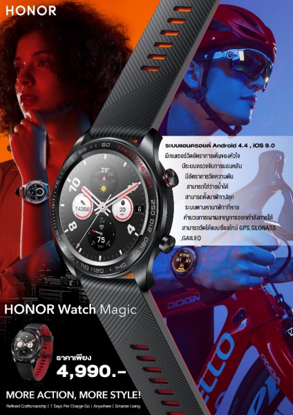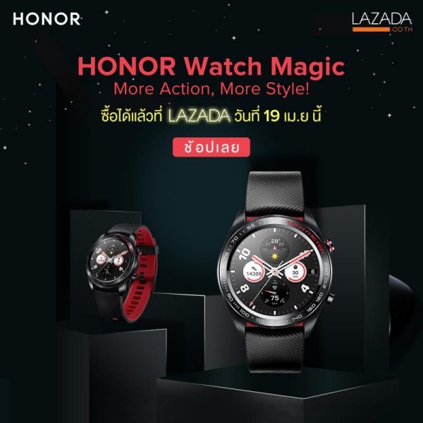 ออเนอร์ ประกาศเปิดตัวนาฬิกาข้อมือรุ่นใหม่ล่าสุด ‘HONOR Watch Magic’ นาฬิกาอัจฉริยะที่ออกแบบมาเพื่อตอบทุกโจทย์การใช้งานในชีวิตประจำวัน ภายใต้คอนเซ็ปต์ “More action, More style !” ไม่ว่าจะด้านการสวมใส่ที่มาพร้อมน้ำหนักเบาสวมใส่สบาย แบตเตอรี่ที่คงทนสามารถใช้งานต่อเนื่องได้นานมากสุดถึง 7 วัน รวมถึงฟีเจอร์โหมดกีฬาสำหรับคนรักสุขภาพ และโหมดสมาร์ทไลฟ์ที่จะช่วยให้ชีวิตคุณสะดวกสบายมากยิ่งขึ้นHONOR Watch Magic พร้อมวางจำหน่ายในราคาเริ่มต้นที่ 4,990 บาท ตั้งแต่วันที่ 19 เมษายนนี้ เป็นต้นไป!