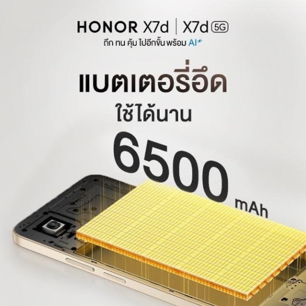 ออเนอร์ (HONOR) เดินหน้าตอกย้ำจุดยืนสมาร์ตโฟน “ถึก ทน คุ้ม ไปอีกขั้น พร้อม AI” เปิดตัว HONOR X7d Series อย่างเป็นทางการในประเทศไทย มาพร้อมสองรุ่นให้เลือก ได้แก่ HONOR X7d 4G (8+256GB) และ HONOR X7d 5G (8+256GB) โดดเด่นด้วยดีไซน์แข็งแกร่งระดับพรีเมียม มาตรฐาน IP65 กันน้ำกันฝุ่น และการรับรองความทนทานระดับ 5 ดาวจาก SGS ที่สามารถทนต่อแรงตกกระแทกจากความสูงถึง 2 เมตร เสริมด้วยฟีเจอร์ AI อัจฉริยะครบชุด ทั้ง AI Button สำหรับเรียกใช้งานคำสั่งสำคัญอย่างรวดเร็ว และ AI Eraser ที่ลบสิ่งรบกวนในภาพได้แนบเนียนราวมือโปร พร้อมแบตเตอรี่คู่ความจุเต็มพิกัด 6,500mAh ใช้งานได้ยาวนานตลอดวัน ครบทั้งความถึกและความฉลาดในเครื่องเดียว เปิดราคาสุดคุ้มเริ่มต้นเพียง 5,999 บาท พร้อมวางจำหน่าย 23 ตุลาคมนี้ทั่วประเทศ