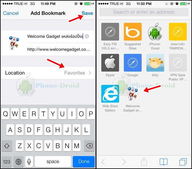 สำหรับท่านใดที่ชอบเข้าเว็บผ่าน safari กันบ่อย ๆ มีบันทึกเว็บโปรดไว้หน้าแรกของ safari มาฝากกันครับ ซึ่งจะช่วยให้เราไม่ต้องพิมพ์ URL เพียงแค่แตะที่ไอคอนที่เราบันทึกไว้ก็สามารถเข้าเว็บที่เราต้องการค้นหาข้อมูลต่าง ๆ กันได้เลยครับ