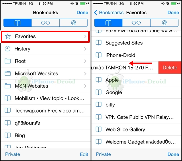 และวิธีลบนะครับ ให้เข้าไปที่ Bookmarks (ที่คั่นหน้า) > Favorites (ที่ชื่นชอบ) > แล้วเลือกลบได้เลย