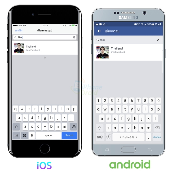 3. ในหน้าเพิ่มกรอบให้พิมพ์คำว่า Thai เพื่อค้นหาธงชาติไทย หรือจะค้นหากรอบอื่น ๆ ก็ได้เช่นกัน เมื่อค้นหาได้แล้ว ก็แตะเลือกได้เลย