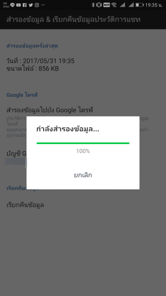 เรียกคืนข้อมูล ให้เลือกที่ “เรียกคืนข้อมูล” จากนั้นระบบจะทำการเรียกคืนข้อมูลที่สำรองไว้ เมื่อเรียบร้อยแล้วประวัติแชทก็จะกลับคืนมาทั้งหมดครับ