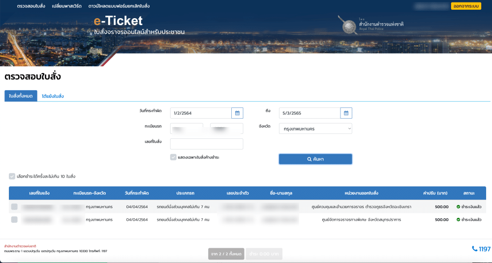 หากมีใบสั่งค้างก็สามารถชำระได้เลยครับ และระบบก็จะตัดออกให้ทันที และก็ยังสามารถดูประวัติการชำระได้ด้วยครับ