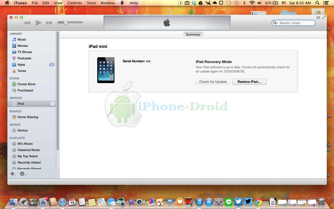 ขั้นตอนที่ 2 : หลังจากกด OK เรียบร้อยแล้ว หลังจากนั้นกด Shift ที่คีย์บอร์ดค้างไว้ (Shift สำหรับ Windows) และ (option สำหรับ Mac) และให้คลิกที่ปุ่ม ‘Restore iPhone’ และให้เลือกไฟล์ iOS 7.0.4 ipsw file ชื่อไฟล์ตัวอย่างรุ่น iPad mini 2 iPad4,5_7.0.4_11B554a_Restore.ipsw