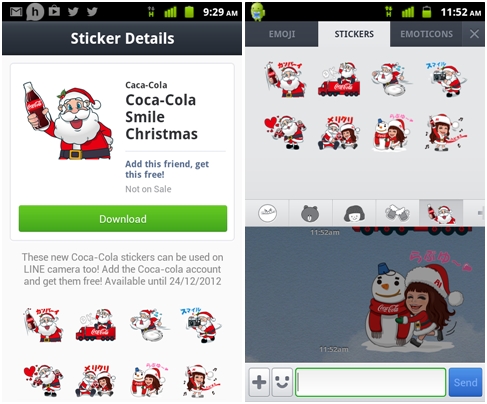 เพียงแค่ติดตั้ง LINE เวอร์ชั่น 2.5.1 และเข้าเว็บบนมือถือ Android และแตะที่ลิงค์นี้ >> “Coca-Cola Smile Christmas<< หรือรหัสนี้ line://shop/detail/651 เพื่อ Add friend และโหลดกันได้เลย