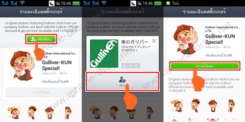 เพียงแค่ติดตั้ง LINE เวอร์ชั่น 2.5.1 และเข้าเว็บบนมือถือ Android และแตะที่ลิงค์นี้ >> Gulliver-KUN Special! << หรือรหัสนี้ line://shop/detail/711 เพื่อ Add friend และโหลดกันได้เลย