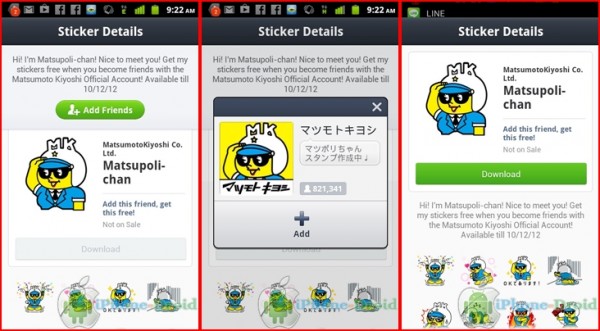 วิธีนี้ง่ายมาก ๆ  เพียงแค่ติดตั้ง LINE เวอร์ชั่น 2.5.1 และเข้าเว็บบนมือถือ Android และแตะที่ลิงค์นี้ >> “Matsupoli-chan”<< เพื่อ Add friend และโหลดกันได้เลย