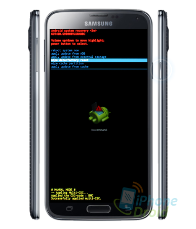 3. กดปุ่มลดเสียง (Volume down) เพื่อเลื่อนลงมาที่เมนู wipe data/factory reset จากนั้นกดปุ่มปิด/เปิดเครื่อง (Power) เพื่อเลือกเมนูนี้