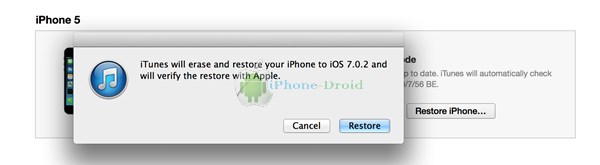 หลังจากที่เลือก FW แล้วกดที่ Restore ได้เลยครับ จากนั้นรอประมาณ 10-15 นาที เมื่อเสร็จเรียบร้อยก็สามารถใช้งาน iOS 7.0.2 ได้แล้ว