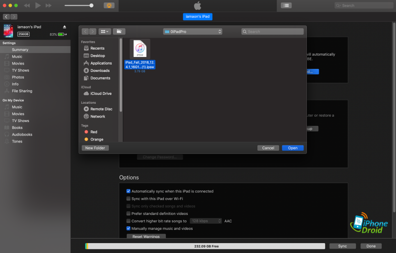 เลือกไฟล์ iPadOS เพื่อติดตั้ง คลิก Open และทำตามขั้นตอน