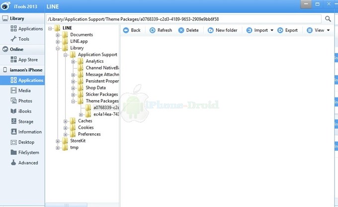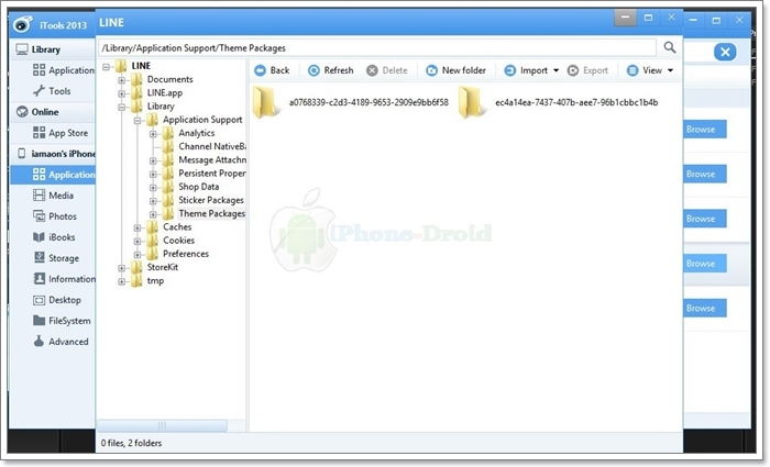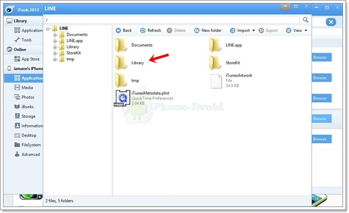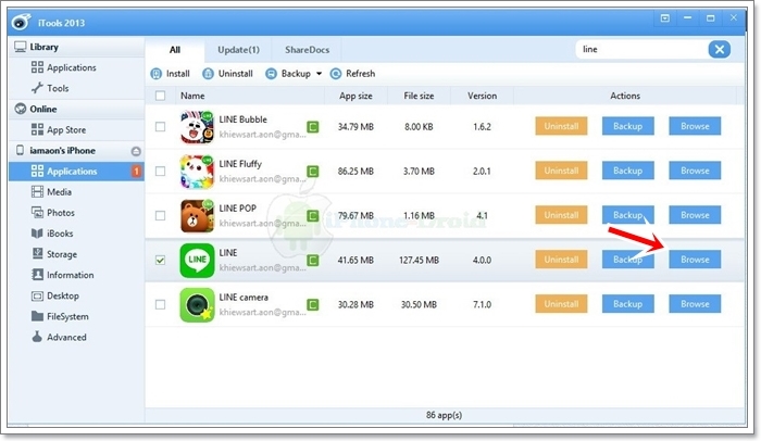 2. เปิด itools ที่ติดตั้ง “บนคอมพิวเตอร์” เลือกที่ Applications ค้นหาแอพ LINE > Browse เลือกที่ Folder แบบในภาพด้านล่างนะครับ