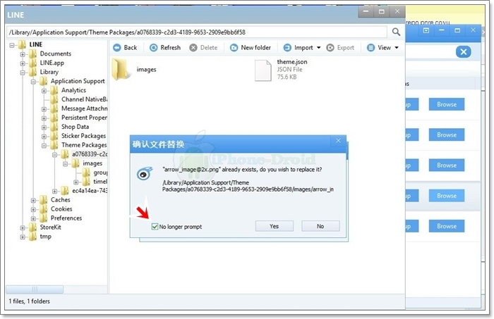 ติ๊กถูกที่ No longer prompt และเลือกไปที่ Yes จากนั้นโปรแกรมจะทำงานสักครู่ หลังจากที่ไฟล์ทั้งหมดถูกก๊อปปี้ลงไปเรียบร้อยก็สามารถใช้ธีม LINE เวอร์ชั่น 4.0.0 ได้แล้วครับ