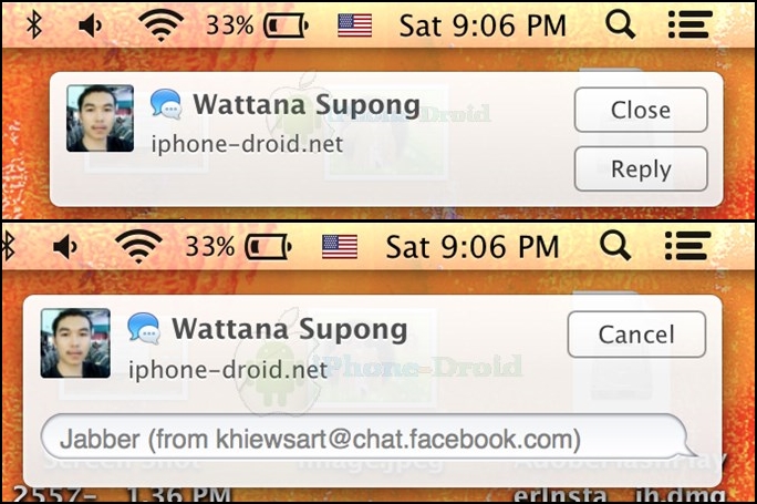 ตัวอย่างการใช้งานแชท Facebook จากแอพ Messages ของ Mac OS X