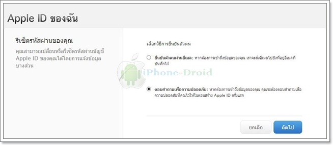 2. วิธีต่อไปเป็นการรีเซ็ตด้วยการตอบคำถาม ให้เลือกที่ ตอบคำถามเพื่อความปลอดภัย เลือกถัดไปครับ