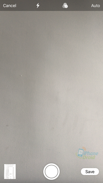 จากนั้นกล้องจะเปิดขึ้นมาครับ และส่องไปที่เอกสารที่ต้องการแสกน เมื่อแอพจับตำแหน่งที่จะสแกนให้แล้วจะถ่ายภาพให้อัตโนมัติครับ หรือกดถ่ายเองก็ได้เช่นกันครับ โดยสามารถมาเลือกตำแหน่งของพื้นที่ต้องการสแกนได้เอง