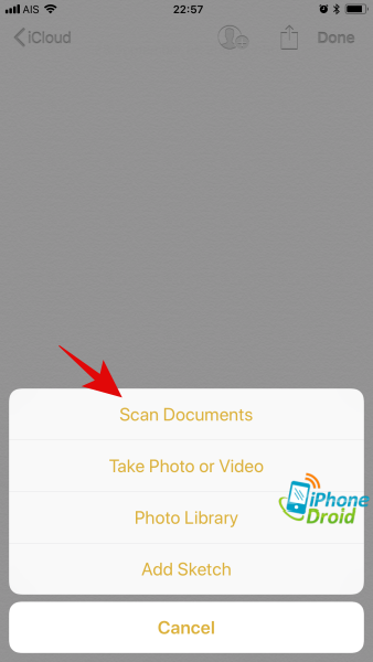 เอกสารที่สแกนแล้วจะเข้ามาอยู่ในแอพ Notes
