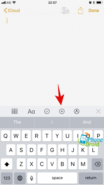 เข้าไปที่แอพ Notes แตะไปที่ +