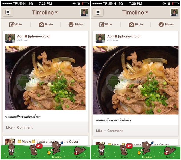หลังจากที่ LINE ปล่อยอัพเดทเวอร์ชั่น 3.10 หลาย ๆ คนพบว่าหลังจากที่โพสต์ภาพลง Timeline และห้องแชท ของ LINE ภาพไม่ชัด เบลอ ซึ่งจะต้องไปปรับตั้งค่ากันก่อนครับภาพถึงจะกลับมาชัดเหมือนเดิม ตามตัวอย่างในด้านล่างนี้นะครับ