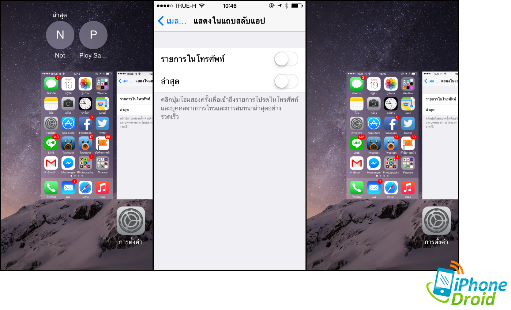 เมนูภาษาอังกฤษ : ให้ไปที่ Settings > Mail, Contacts, Calendars > Show in App Switcher > แล้วปิด Phone Favorites กับ Recents
