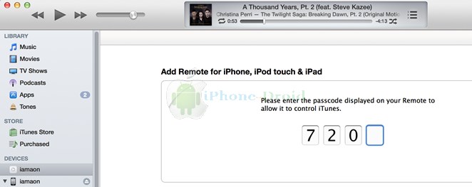 หลังจากที่เลือกไปแล้วโปรแกรมจะให้ใส่ตัวเลข 4 หลัก ให้ใส่ตามที่ปรากฎขึ้นมาที่แอพ Remote ได้เลย