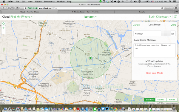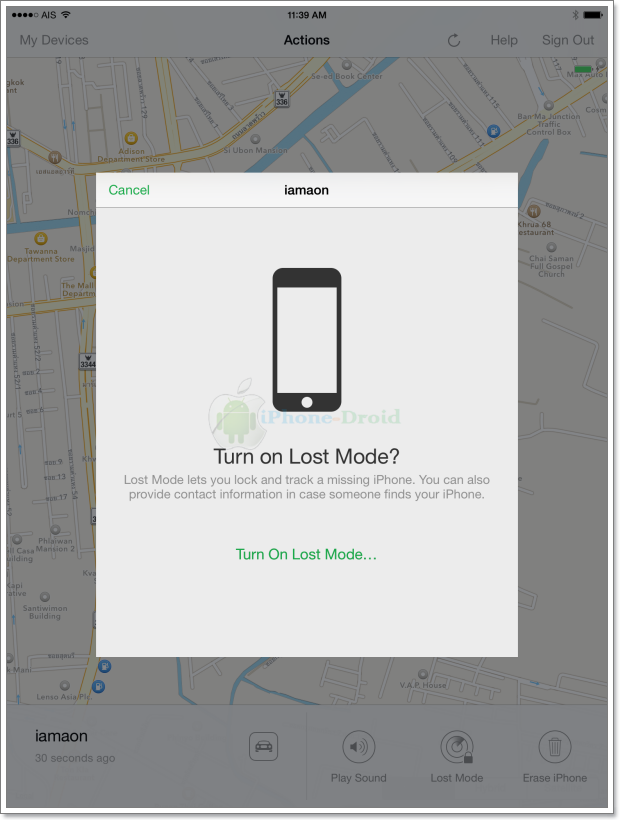 Lost Mode สามารถใช้งานบนแอพ Find my iPhone ได้เช่นกันครับ เลือกที่ Lost Mode เพื่อล็อคเครื่องพร้อมส่งข้อความเพื่อติดต่อไปยังเครื่องที่หาย