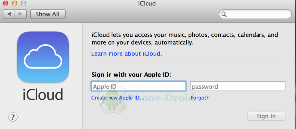 การที่จะใช้ฟีเจอร์ Find my iPhone ได้นั้นเราจะต้องล็อคอินใช้งานในส่วนของ iCloud ก่อนครับ ซึ่งจะต้องใช้ Apple ID ในการล็อคอินที่ iPhone, iPod, iPad, Mac