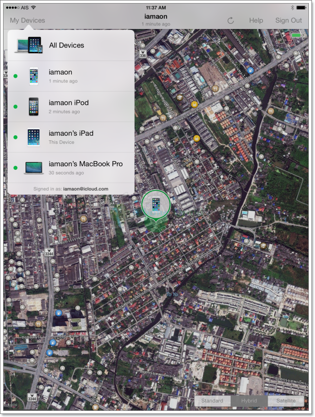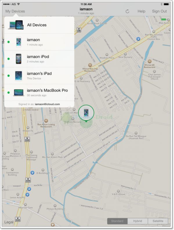 หลังจากที่ล็อคอินการใช้งาน iCloud และเปิดใช้งาน Find my iPhone และ Find My Mac เรียบร้อยแล้วเรามาลองใช้งานกันดูครับระบบการทำงานทั้การค้นหาจาก iPhone, iPod, iPad ผ่านแอพ Find my iPhone และการค้นหาจากเว็บไซต์ www.icloud.com มีขั้นตอนและวิธีการค้นหายังไงกันบ้าง