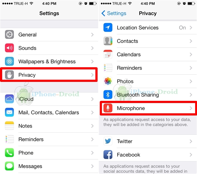 ถ้าย้อนไปเมื่อปีที่แล้วตอนที่ iOS 6 ออกใหม่ ๆ ถ้ายังจำกันได้การจะเข้าไปใช้งานรูปภาพภายในอัลบั้มภาพต้องมีการกดยอมรับการเข้าถึงอัลบั้มภาพได้ก่อนถึงจะเข้าไปในอัลบั้มภาพได้ ล่าสุดบน iOS 7 ได้แอปเปิลได้เพิ่มฟีเจอร์นี้ขึ้นมาสำหรับแอพต่าง ๆ ที่ต้องใช้ไมโครโฟนร่วมด้วยครับ