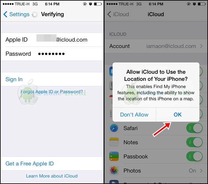 ถ้ามีอีเมล์ที่เป็น Apple ID อยู่แล้วกรอกลงไปได้เลยครับ แล้ว Sign In จากนั้นตัวเครื่องจะถามว่า ต้องการใช้ Find my iPhone มั้ย แนะนำให้ตอบ OK ครับ เพื่อที่จะเปิดใช้ฟีเจอร์นี้ หากว่าเครื่องหายไปสามารถค้นหาจาก www.icloud.com ได้แต่ถ้าหาจนสุดความสามารถแล้วไม่เจอ คนที่ขโมยไปเอาไป Restore ใหม่ หรือเอาไปขาย ก็จะไม่สามารถใช้งานได้ไม่ว่าจะด้วยวิธีใด ๆ ก็ตามเพราะตอนที่จะเข้าใช้งานเครื่องก็จะติด Activation Lock อยู่ดีครับ