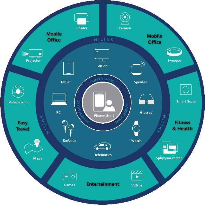 จุดแข็งของหัวเว่ยคือเป็นการเป็นบริษัทชั้นนำด้านเทคโนโลยี ที่มีระบบเครือข่าย ซอฟต์แวร์และฮาร์ดแวร์เป็นของตนเอง ซึ่งนับเป็นความได้เปรียบอย่างยิ่งในการสร้างอีโคซิสเต็มที่ไร้รอยต่อภายในอาณาจักรของหัวเว่ย ภายใต้กลยุทธ์ธุรกิจที่ชื่อว่า “1+8+N” ซึ่งจะกำหนดแนวทางการรุกตลาดผลิตภัณฑ์เทคโนโลยีอัจฉริยะของหัวเว่ยตลอดระยะเวลาอีก 10 ปีข้างหน้า โดยเลข 1 หมายถึง สมาร์ทโฟน หรืออุปกรณ์หลักที่จะเป็นหัวใจในการเชื่อมต่อและควบคุมการทำงานของดีไวซ์อื่นๆ ขณะที่ 8 หมายถึง สมาร์ทดีไวซ์อื่นๆ อีก 8 อย่างที่จะเชื่อมต่อกับสมาร์ทโฟน ได้แก่ แล็ปท็อป แท็บเล็ต สมาร์ทวอทช์ หูฟังไร้สาย แว่นตา ทีวีหรือหน้าจออัจฉริยะ ลำโพง และรถยนต์ ส่วน N หมายถึง อินเทอร์เน็ตในทุกสรรพสิ่ง (IoT) และเครื่องหมาย “+” หมายถึง เครือข่ายการเชื่อมต่อในบริเวณกว้าง (WAN) และเทคโนโลยีการเชื่อมต่อระยะใกล้ เช่น Huawei Share และ HiLink ที่จะผสานเครือข่ายอีโคซิสเต็มของหัวเว่ยให้สมบูรณ์ เพื่อมอบประสบการณ์การทำงานที่ลื่นไหล เต็มประสิทธิภาพ และให้ชีวิตเอไอ ไร้รอยต่อเกิดขึ้นได้อย่างเป็นรูปธรรม