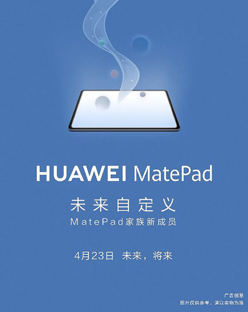 เมื่อช่วงต้นเดือนที่ผ่านมา Huawei ได้เผยภาพทีเซอร์ของ MatePad 10.4 แท็บเล็ตรุ่นใหม่ผ่านทางร้านค้า รวมไปถึงทางออนไลน์อย่าง JD.com และ VMall ล่าสุด ทางบริษัทได้ประกาศวันเปิดตัวอย่างเป็นทางการแล้วเป็นวันที่ 23 เมษายนนี้
