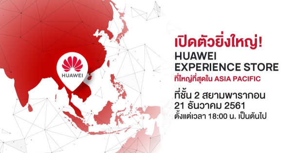 หัวเว่ยฉลองเปิดตัว Huawei Experience Store ที่ใหญ่ที่สุดในภูมิภาคเอเชียแปซิฟิก ณ ห้างสรรพสินค้าสยามพารากอน เอาใจแฟนหัวเว่ยโดยเฉพาะ จัดกิจกรรมพร้อมรับของสมนาคุณสุดพิเศษ พร้อมลุ้นรับบัตรกำนัลมูลค่าสูงสุด 3,000 บาท ณ HUAWEI Experience Store สยามพารากอน เพียงวันเดียวเท่านั้น!