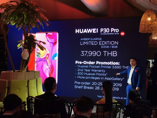 Amber Sunrise ที่มีเฉพาะใน HUAWEI P30 ProLimited Edition สมาร์ทโฟนที่จะกลับมาปฏิวัติวงการถ่ายภาพ พร้อมมอบประสบการณ์การใช้งานอันยอดเยี่ยม ทั้งยังเปี่ยมไปด้วยสไตล์ที่สะท้อนตัวตนของผู้ใช้อย่างเหนือชั้น HUAWEI P30 Pro Limited Edition Amber Sunrise เปิดให้พรีออเดอร์แล้วตั้งแต่วันที่ 20 – 25 มิถุนายน 2562 ณ หัวเว่ยแบรนด์ช้อป และร้านตัวแทนจำหน่ายที่ร่วมรายการโดยจะวางจำหน่ายอย่างเป็นทางการในวันที่ 28 มิถุนายนนี้ ในราคา 37,990 บาท