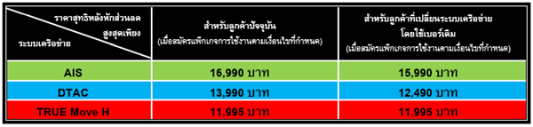 หมายเหตุ* ตรวจสอบเงื่อนไขเพิ่มเติมของแต่ละเครือข่าย ณ ร้านจำหน่าย