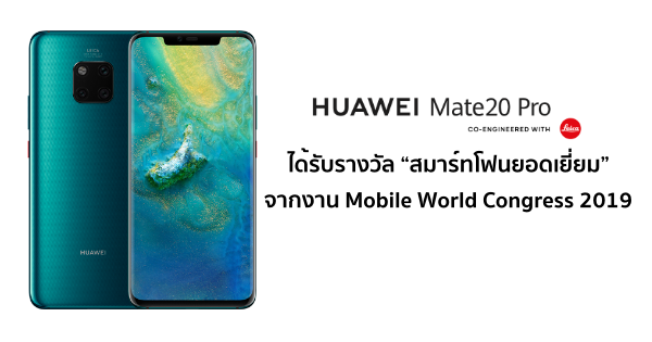 บาร์เซโลน่า, สเปน – หัวเว่ย คอนซูมเมอร์ บิสสิเนส กรุ๊ป ได้รับรางวัลจาก GSMA ผู้จัดงาน Mobile World Congress 2019 โดยสมาร์ทโฟน HUAWEI Mate 20 Pro ได้รับรางวัล “สมาร์ทโฟนยอดเยี่ยม (Best Smartphone)” จากประสิทธิภาพอันยอดเยี่ยม คุณสมบัติการถ่ายภาพชั้นเลิศ แบตเตอรี่ที่ใช้งานได้ยาวนาน ระบบการชาร์จไฟที่ล้ำสมัย และรูปลักษณ์ที่งดงาม รางวัลที่หัวเว่ยได้รับครั้งนี้เป็นเครื่องยืนยันถึงนวัตกรรมอันก้าวล้ำของหัวเว่ย และยังสะท้อนถึงความมุ่งมั่นที่จะสรรสร้างทั้งผลิตภัณฑ์และประสบการณ์การใช้งานที่ยอดเยี่ยมสู่มือของผู้บริโภคทั่วทุกมุมโลก