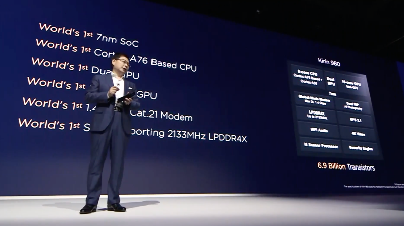 ชิปเซ็ต Kirin 980 ที่ใช้สถาปัตยกรรมการผลิตแบบ 7 นาโนเมตรนั้นมีทรานซิสเตอร์ 6.9 พันล้านตัวอยู่บนชิปขนาดเท่าปลายเล็บมือ ซึ่งเมื่อเทียบกับ Kirin 970 ชิปเซ็ต Kirin 980 ให้ประสิทธิภาพ CPU สูงขึ้น 75% GPU สูงขึ้น 46% และ NPU 226% ในขณะเดียวกัน CPU ใช้พลังงานน้อยลงถึง 58% GPU ใช้พลังงานน้อยลงถึง 178% และ NPU ใช้พลังงานน้อยลงถึง 182%