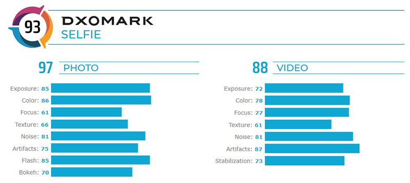 นอกจากนี้ คะแนนเรื่องการถ่ายเซลฟี่ได้ไป 93 คะแนน อยู่อันดับที่ 5 ของตาราง น้อยกว่า Galaxy S10+/S10 5G, Asus Zenfone 6 และ Note 10+ แต่ในเรื่องการถ่ายโบเก้กล้องหน้าก็ยังถือว่าทำได้ดี แต่เรื่องของออโต้โฟกัสยังทำได้ไม่ค่อยดีนัก รวมไปถึงการถ่ายวิดีโอ 1080p และระบบกันสั่นไหวที่ก็เป็นจุดอ่อนด้วยเช่นกัน