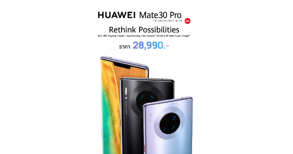HUAWEI Mate 30 Pro สมาร์ทโฟนแฟลกชิปที่จะมาสร้างมาตรฐานใหม่ทั้งนวัตกรรมฮาร์ดแวร์อันทรงพลังและการออกแบบที่นำสมัยซึ่งผสมผสานกันได้อย่างลงตัว วางจำหน่ายทั่วประเทศแล้ววันนี้ ในราคา 28,990 บาท